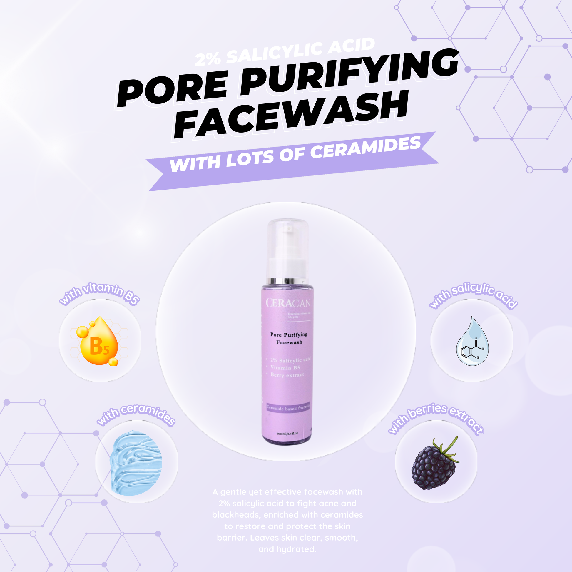 Ceracan Facewash | Pore Purifying Facewash | 2% Salicylic Acid - Vitamin B5 + Ceramides|